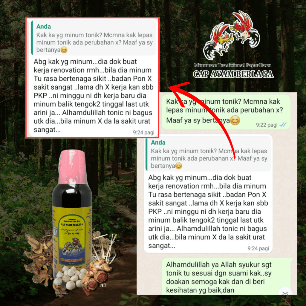 Alhamdulillah Ramai Yang Dah Sihat Setelah Menggunakan Minuman Tonik Cap Ayam Berlaga Turun Temurun Sejak 1972